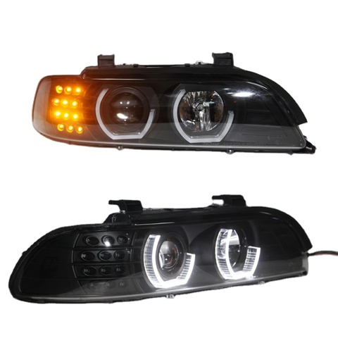 For BMW E39 LED Angel Eyes Head Lamp 1995-2003 Year Black Housing