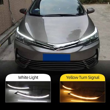 Lampu Depan DRL LED untuk Toyota Corolla, 2 Buah Lampu Siang dengan Arus, Sinyal Belok Dinamis untuk Toyota Corolla 2015- 2019